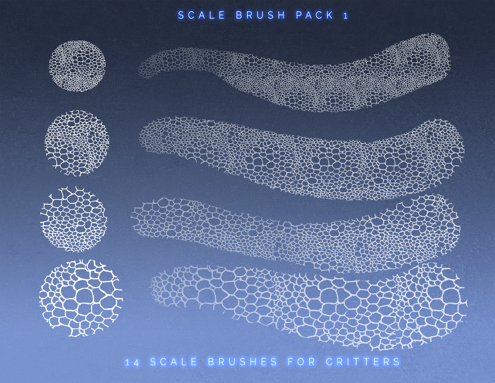 To mark the fantastic milestone of reaching 5,000 followers on Twitter, I'm thrilled to unveil something that many of you have eagerly awaited: A Scale Brush Pack! This is just the beginning of a series of brushes designed to cater to all of your scaly artistic needs.