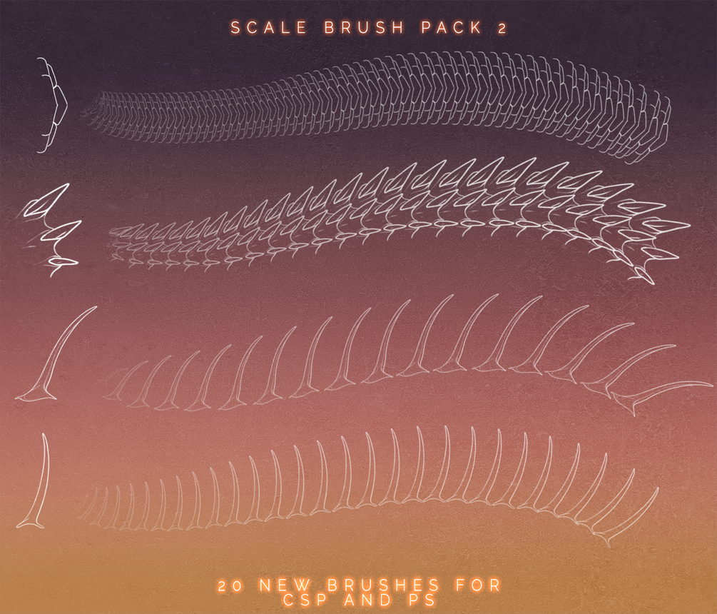 20 new fancy scale, fin ray, and horn-related brushes to add to your collection for all your scaley needs!